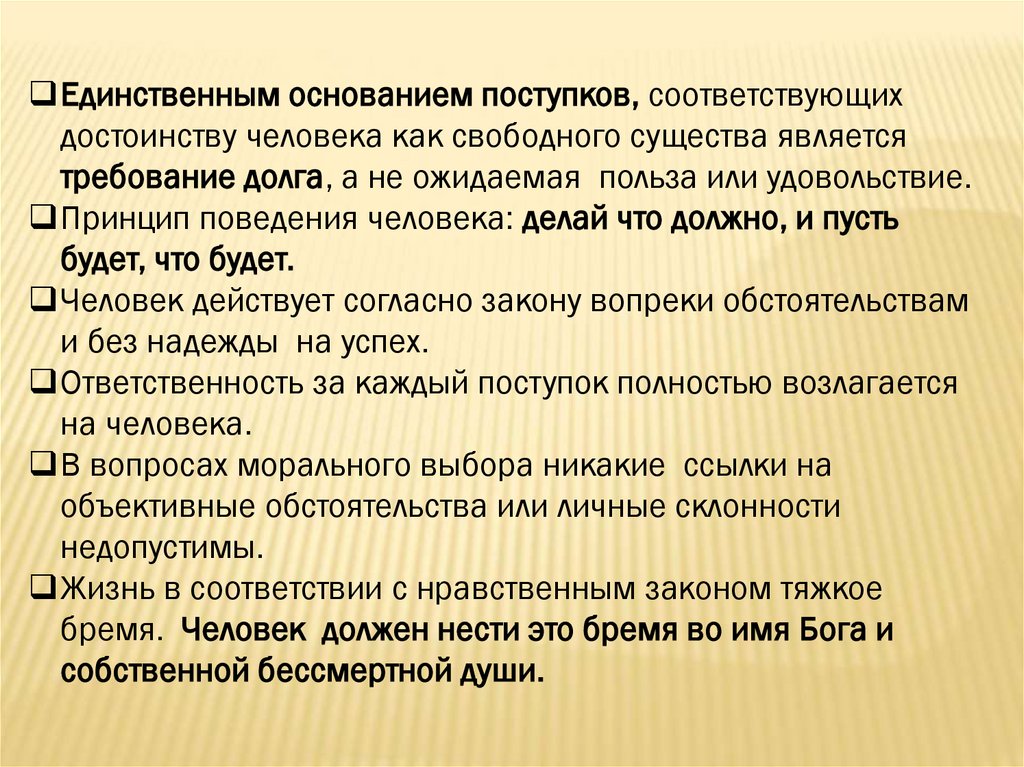 Единственным основанием поступков, соответствующихдостоинству человека как свободного существа является