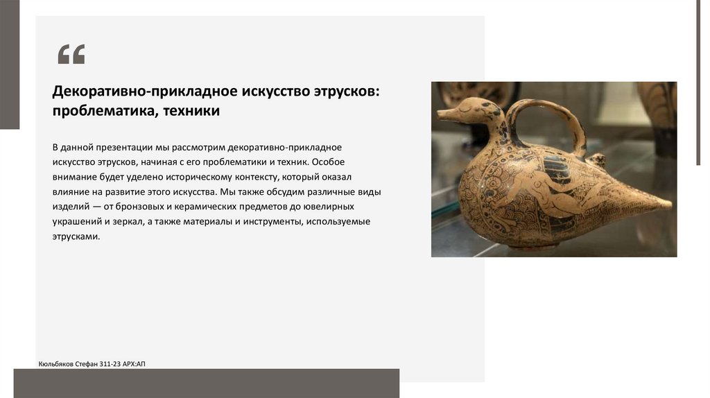 Декоративно-прикладное искусство этрусков:проблематика, техники