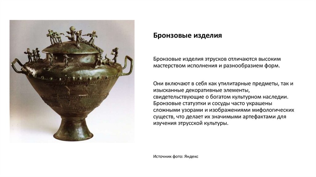 Бронзовые изделияБронзовые изделия этрусков отличаются высоким