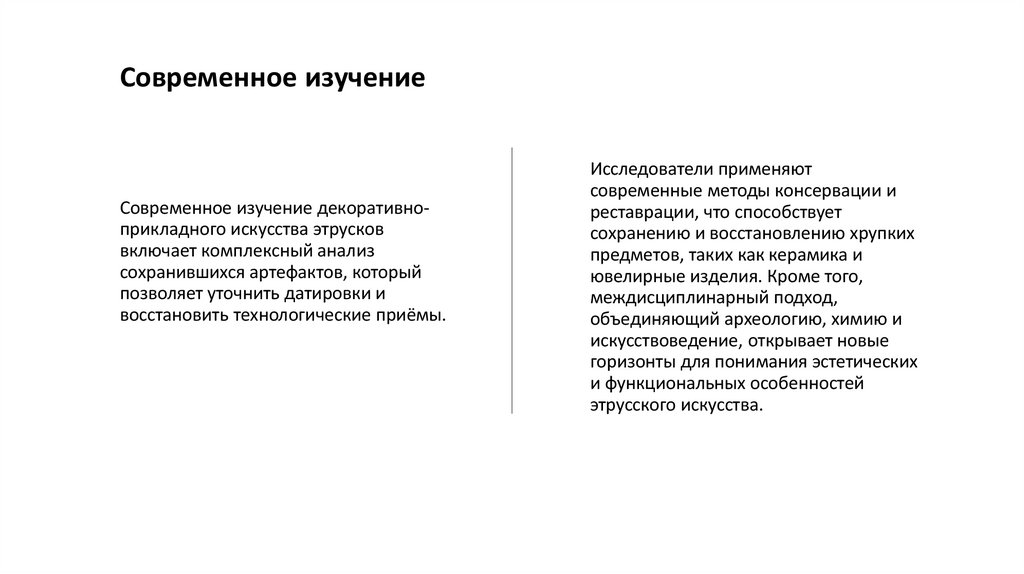 Современное изучениеСовременное изучение декоративноприкладного искусства этрусков