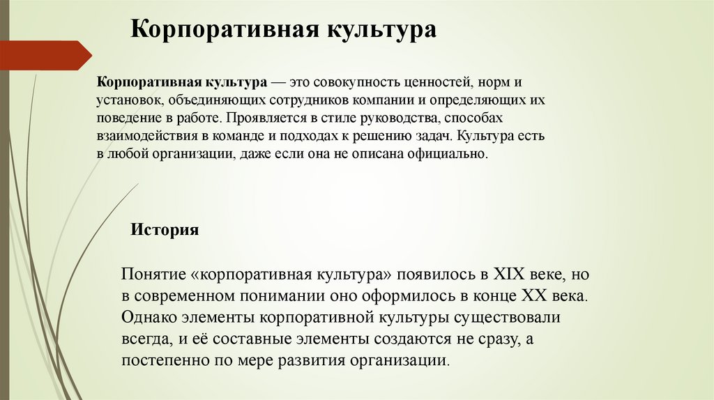 Понятие «корпоративная культура» появилось в XIX веке, но