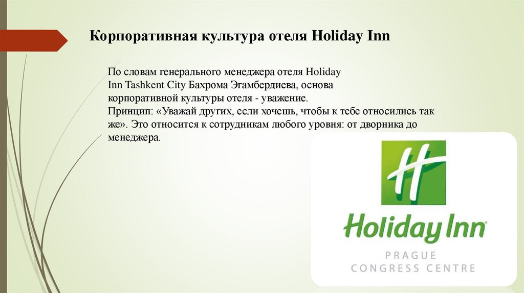 Корпоративная культура отеля Holiday InnПо словам генерального менеджера отеля Holiday