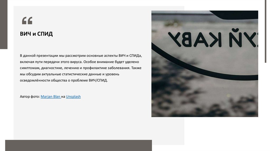 ВИЧ и СПИДВ данной презентации мы рассмотрим основные аспекты ВИЧ и СПИДа,