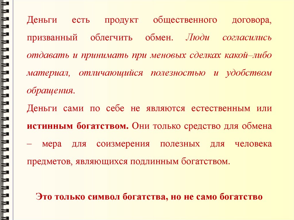 накопления богатства (денег) от баланса, который он