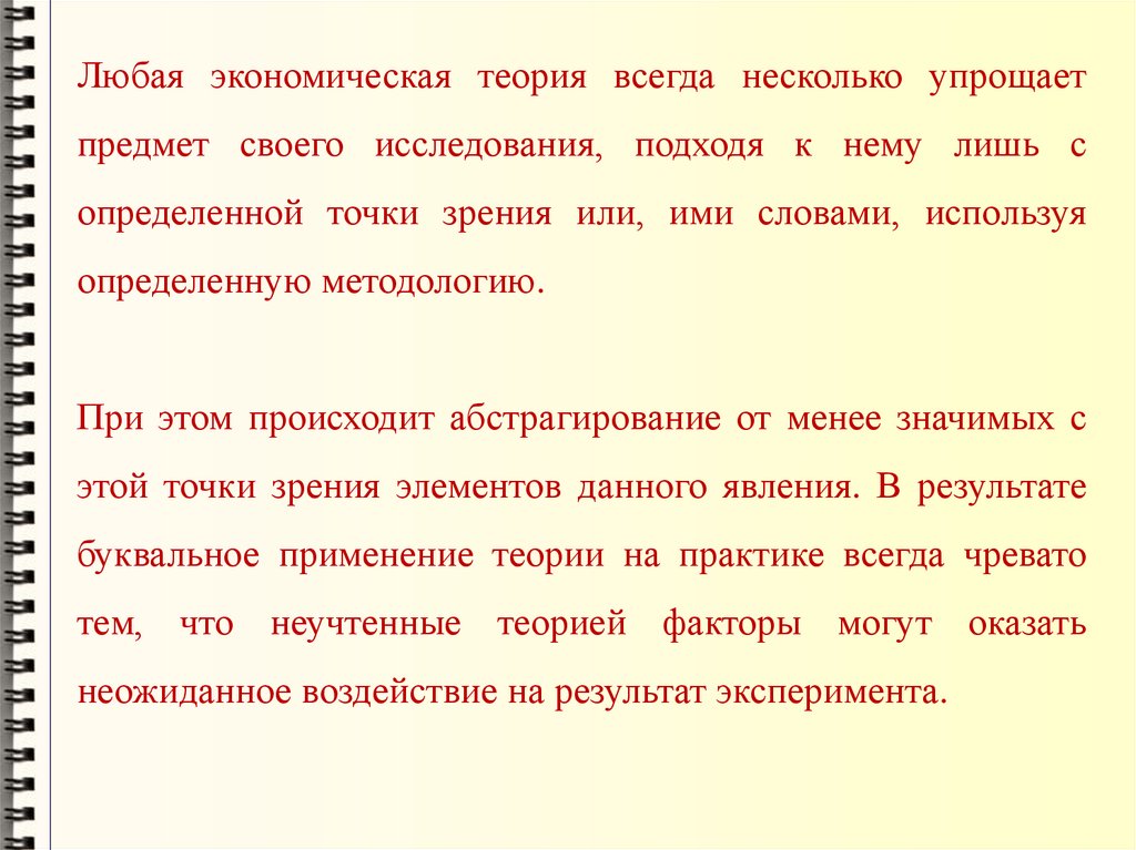 Любая экономическая теория всегда несколько упрощаетпредмет своего исследования, подходя к нему лишь с
