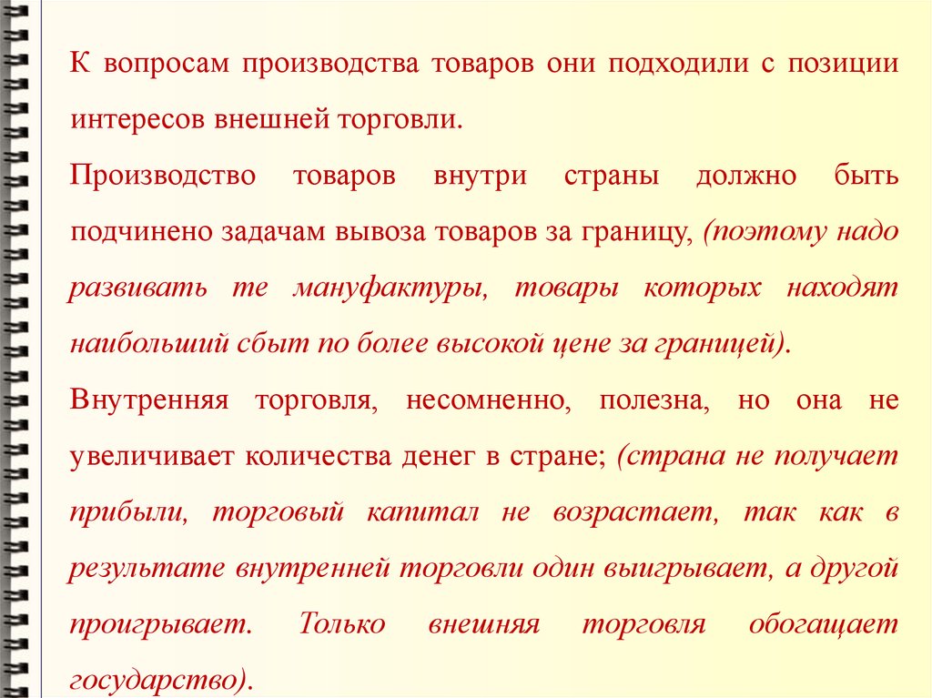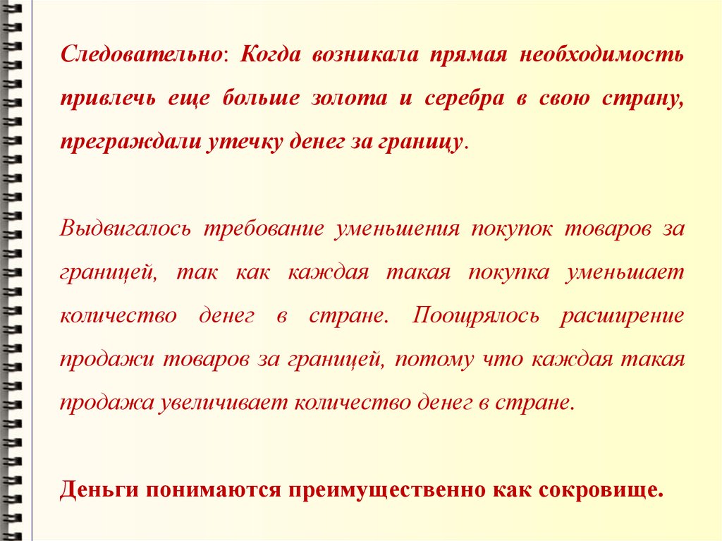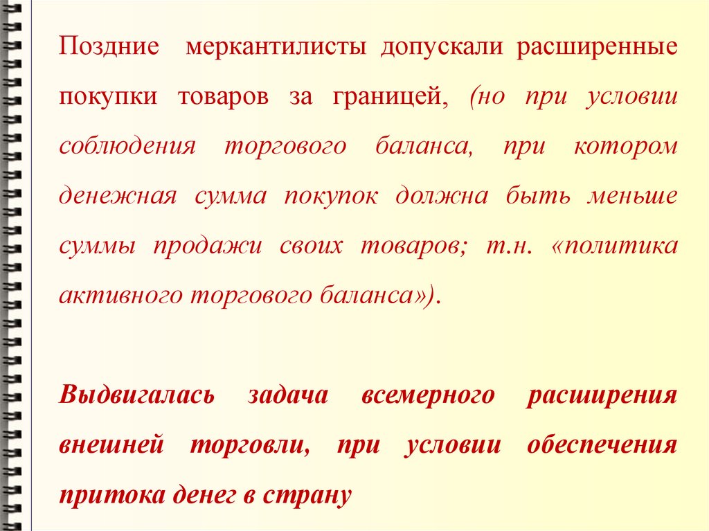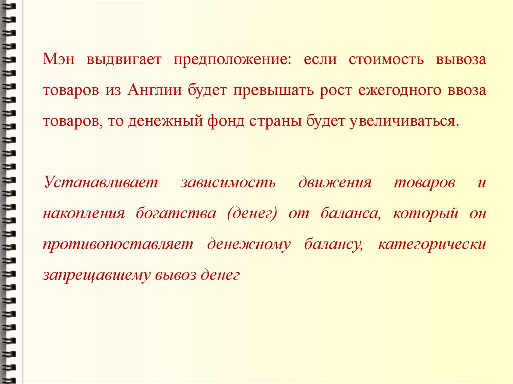 противопоставляет денежному балансу, категорически