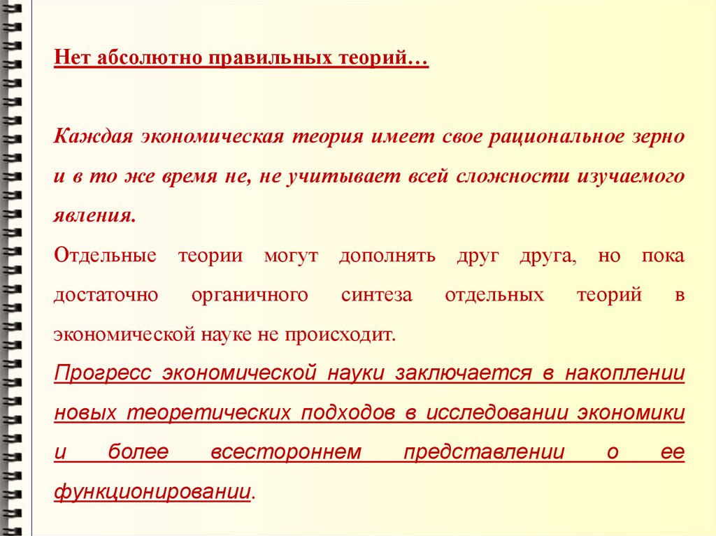 Нет абсолютно правильных теорий…Каждая экономическая теория имеет свое рациональное зерно