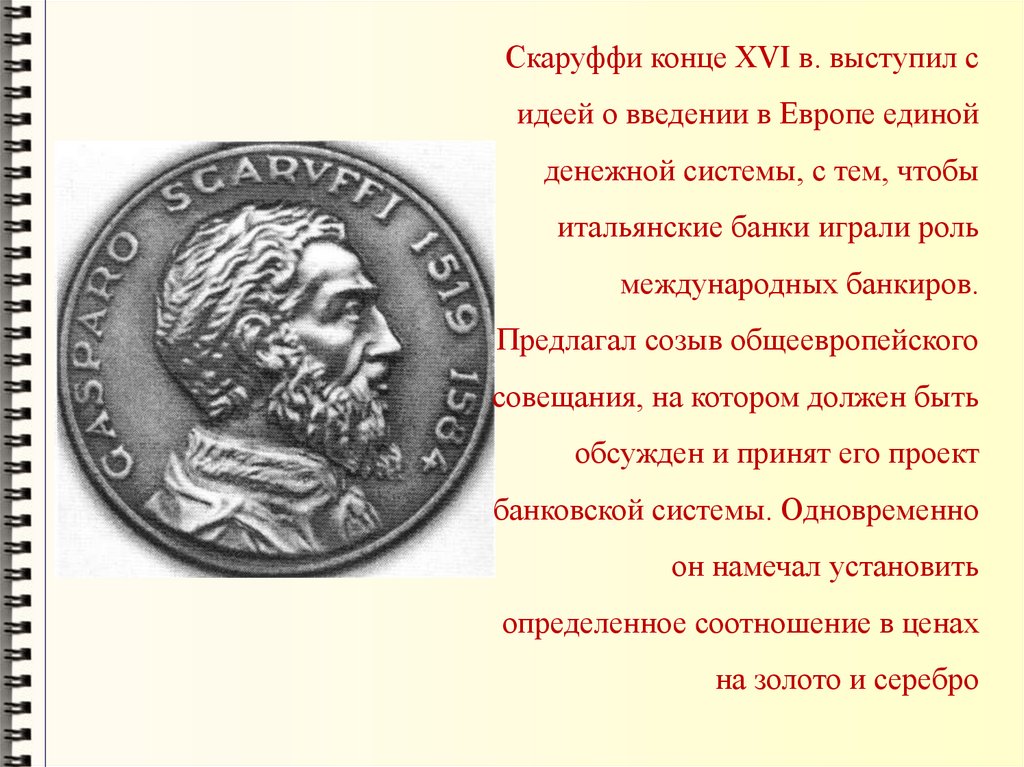 Скаруффи конце XVI в. выступил сидеей о введении в Европе единой