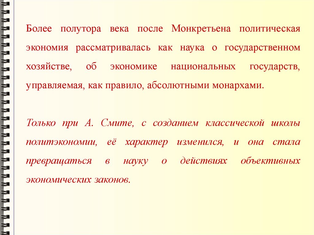 Более полутора века после Монкретьена политическаяэкономия рассматривалась как наука о государственном