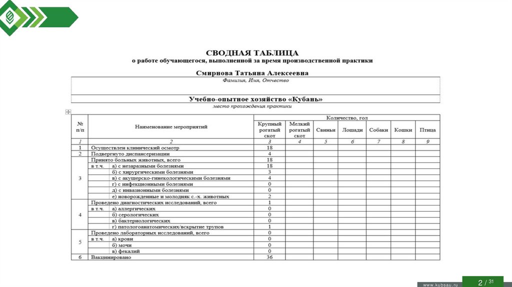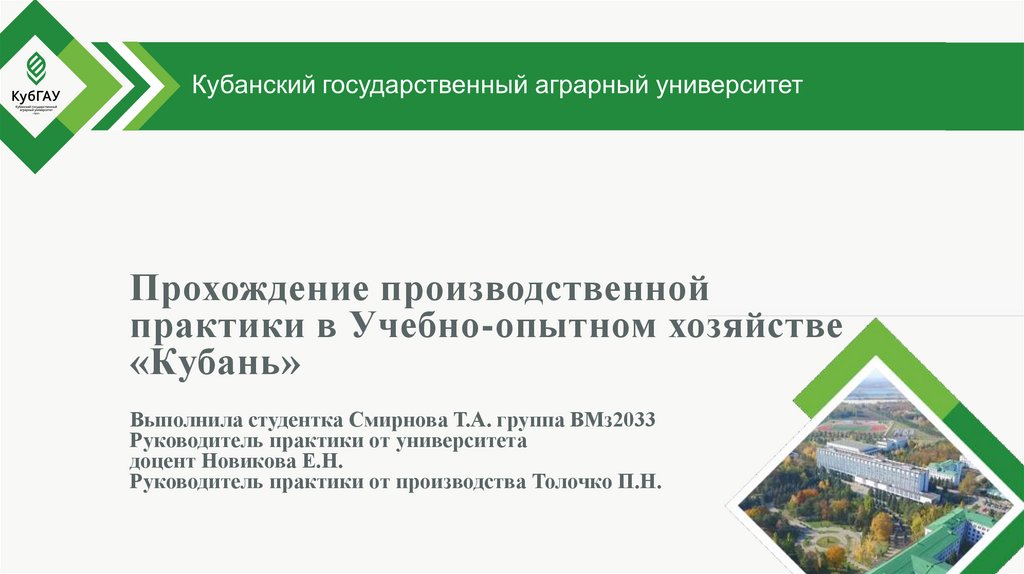 Прохождение производственнойпрактики в Учебно-опытном хозяйстве
