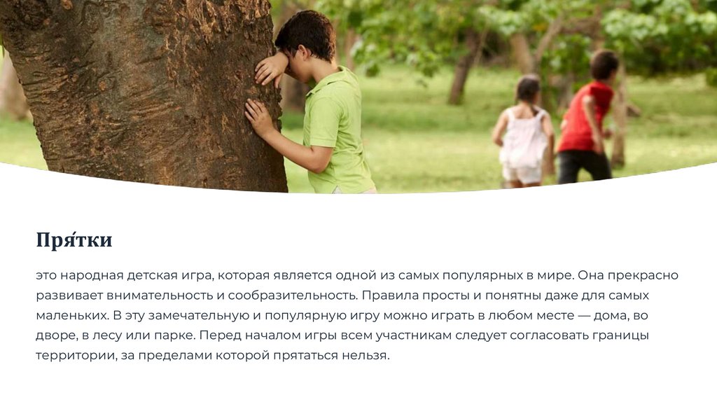 Пря́ткиэто народная детская игра, которая является одной из самых популярных в мире. Она прекрасно