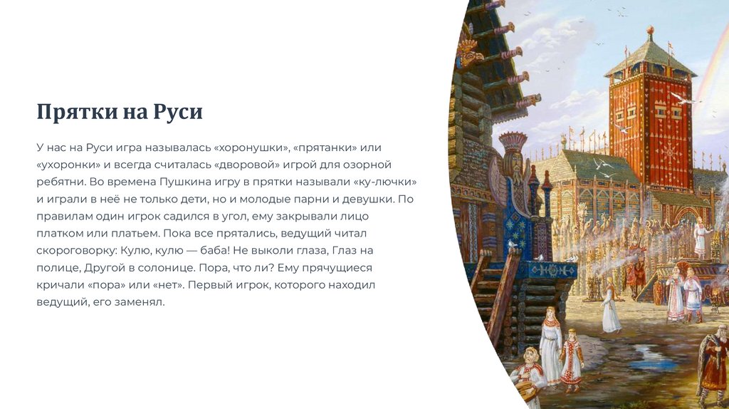 ребятни. Во времена Пушкина игру в прятки называли «ку-лючки»