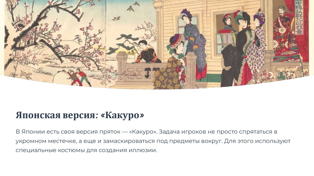 Японская версия: «Какуро»В Японии есть своя версия пряток — «Какуро». Задача игроков не просто спрятаться в