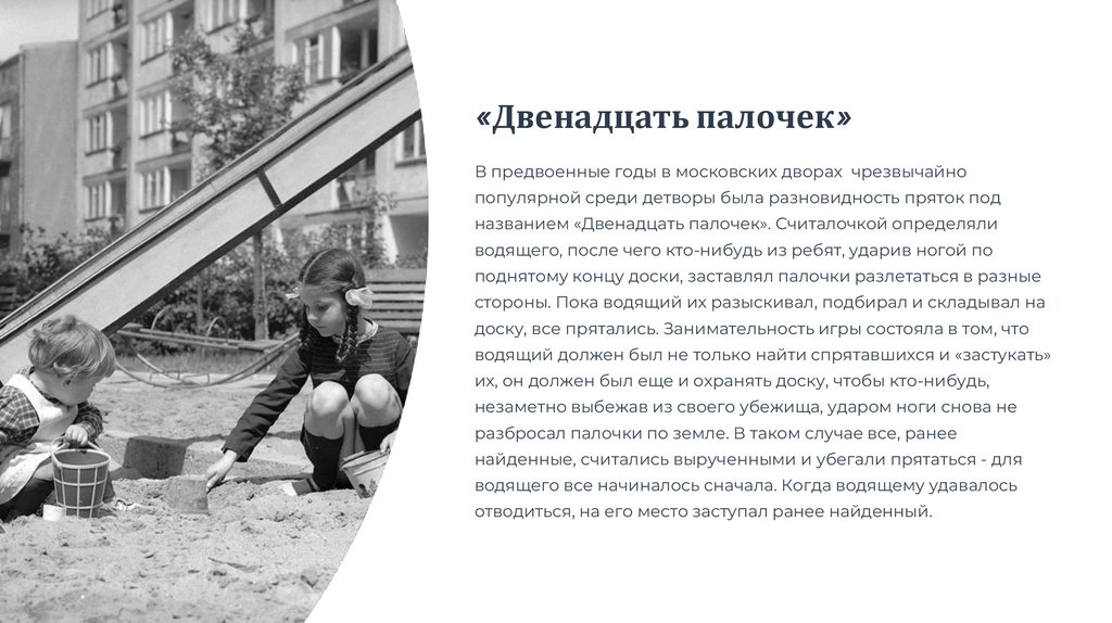 «Двенадцать палочек»В предвоенные годы в московских дворах чрезвычайно