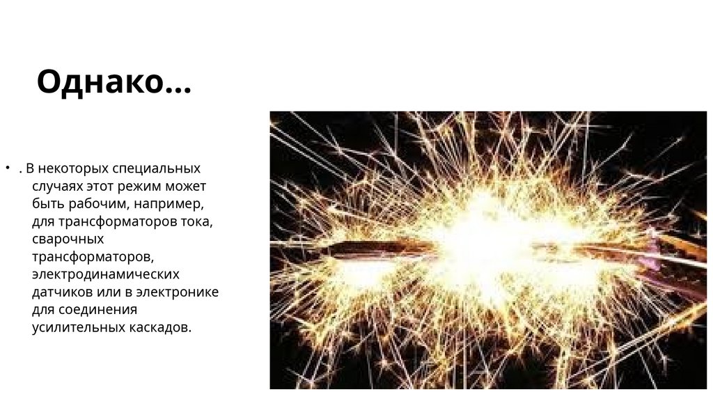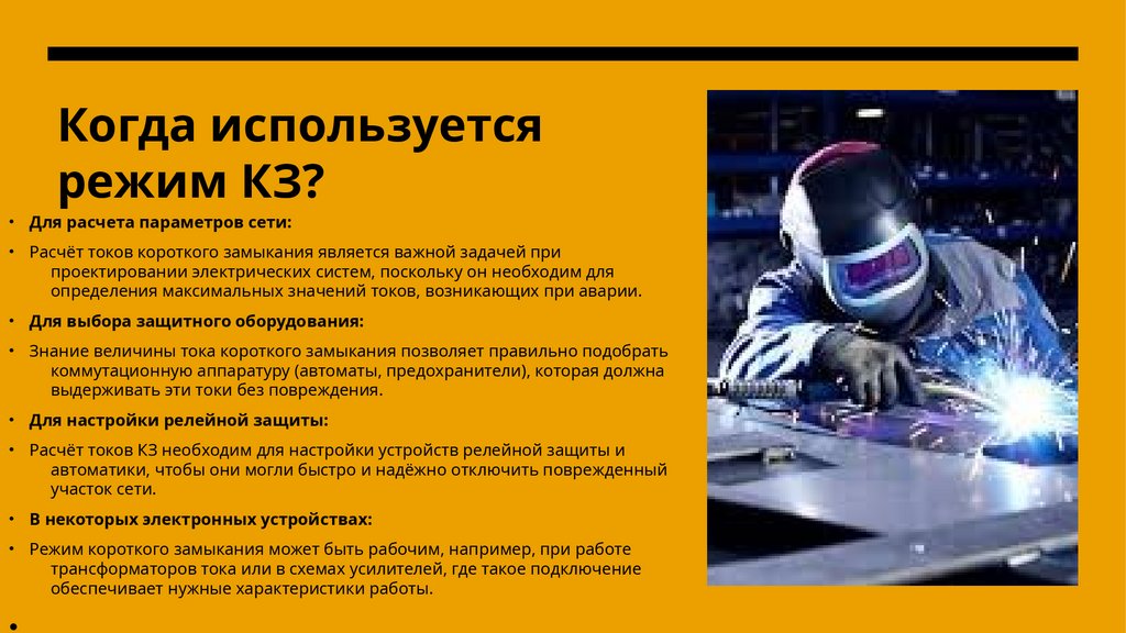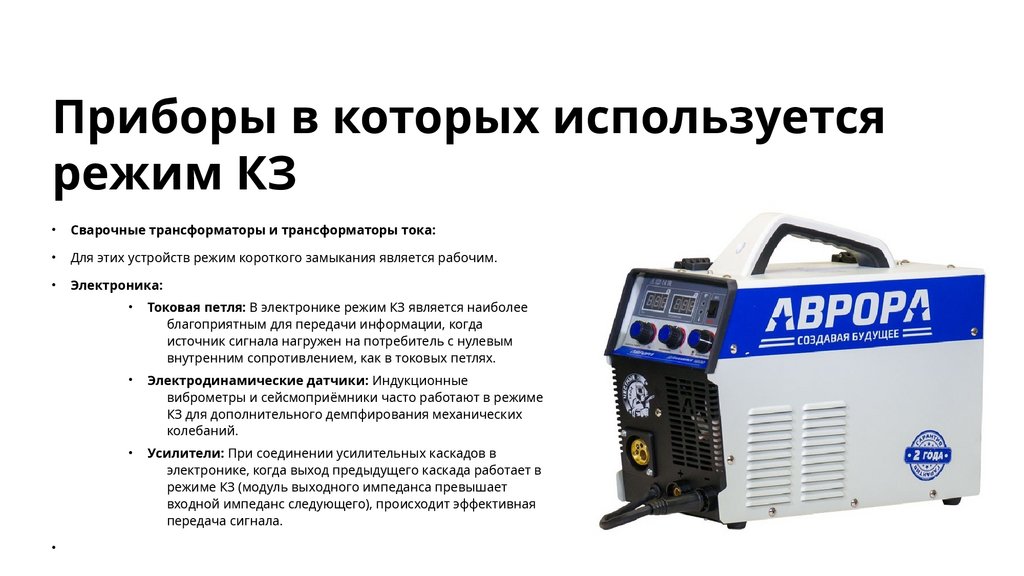 • Режим короткого замыкания может быть рабочим, например, при работе