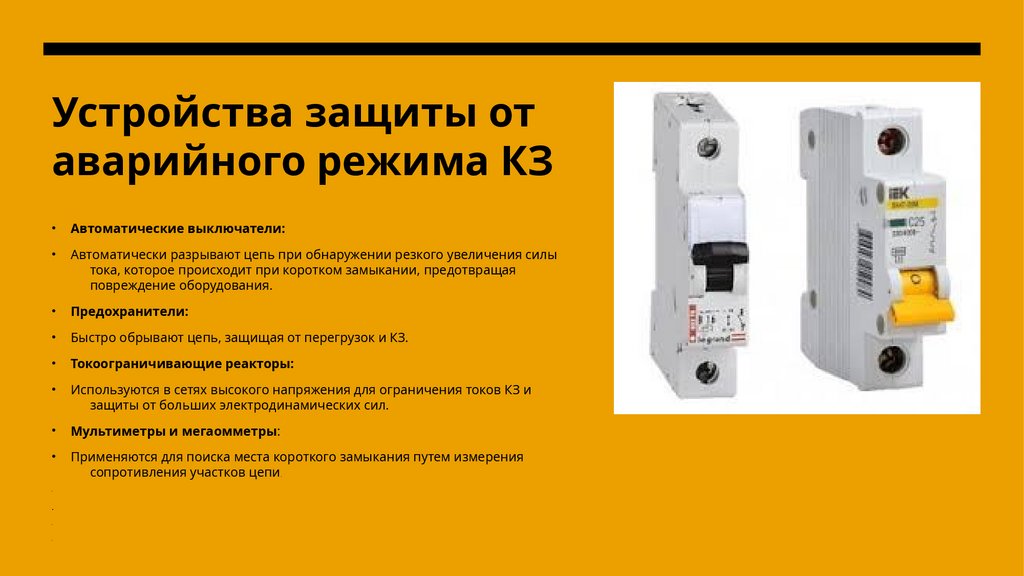 • Знание величины тока короткого замыкания позволяет правильно подобрать