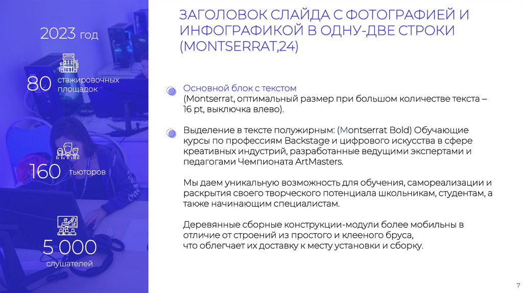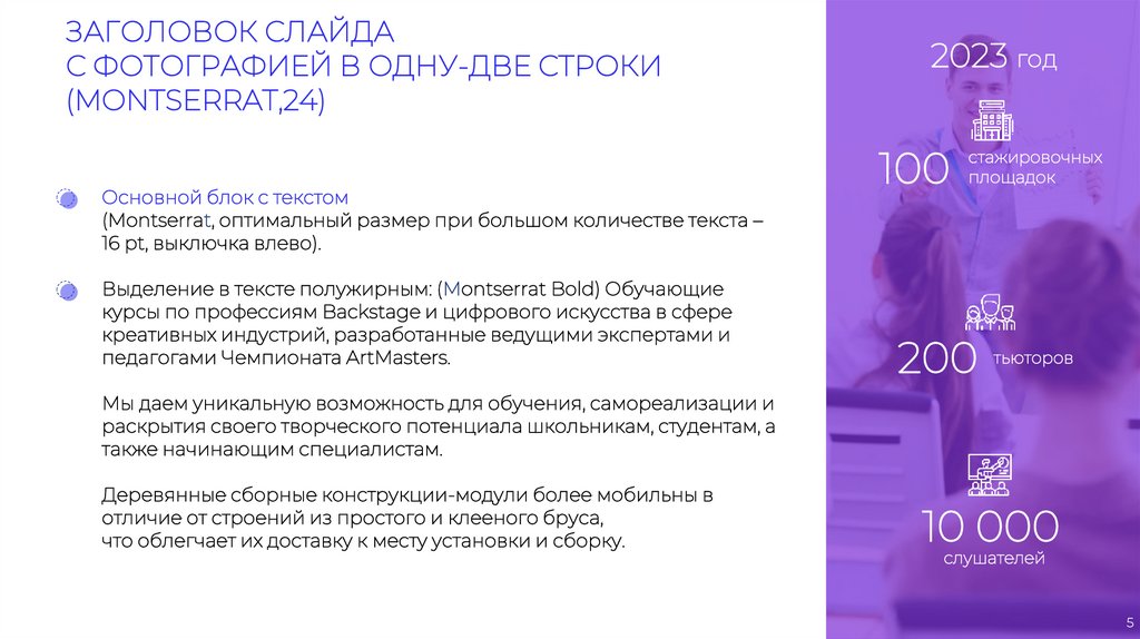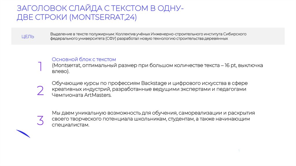 Выделение в тексте полужирным: (Montserrat Bold) Обучающие