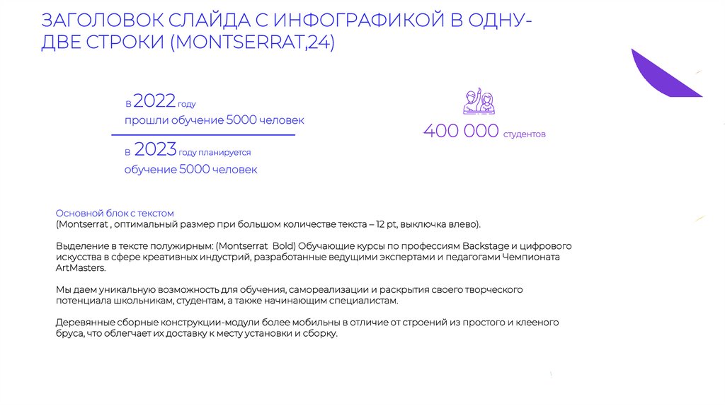 ЗАГОЛОВОК СЛАЙДА С ИНФОГРАФИКОЙ В ОДНУДВЕ СТРОКИ (MONTSERRAT,24)текст