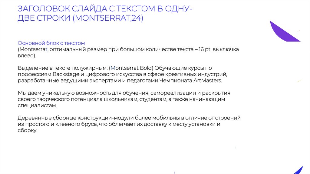 ЗАГОЛОВОК СЛАЙДА С ТЕКСТОМ В ОДНУДВЕ СТРОКИ (MONTSERRAT,24)текст