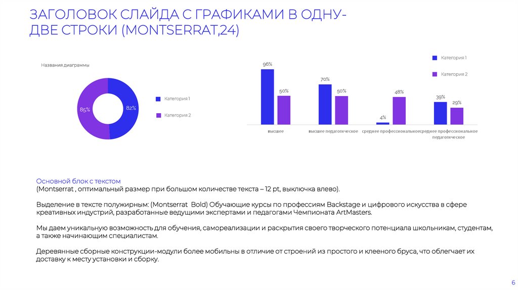 (Montserrat , оптимальный размер при большом количестве текста – 12 pt, выключка влево).