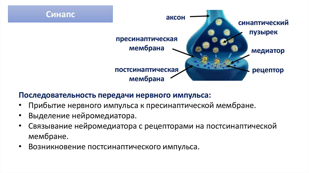 Последовательность передачи нервного импульса: