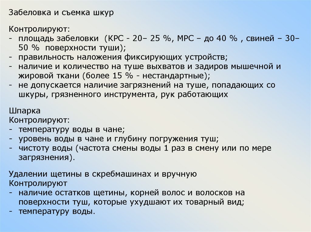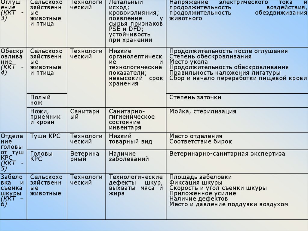 обработки туш (КРС - 4; свиней – 5; МРС – 3)