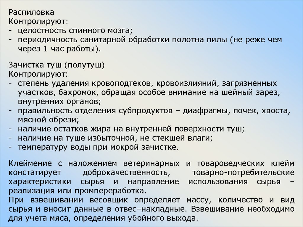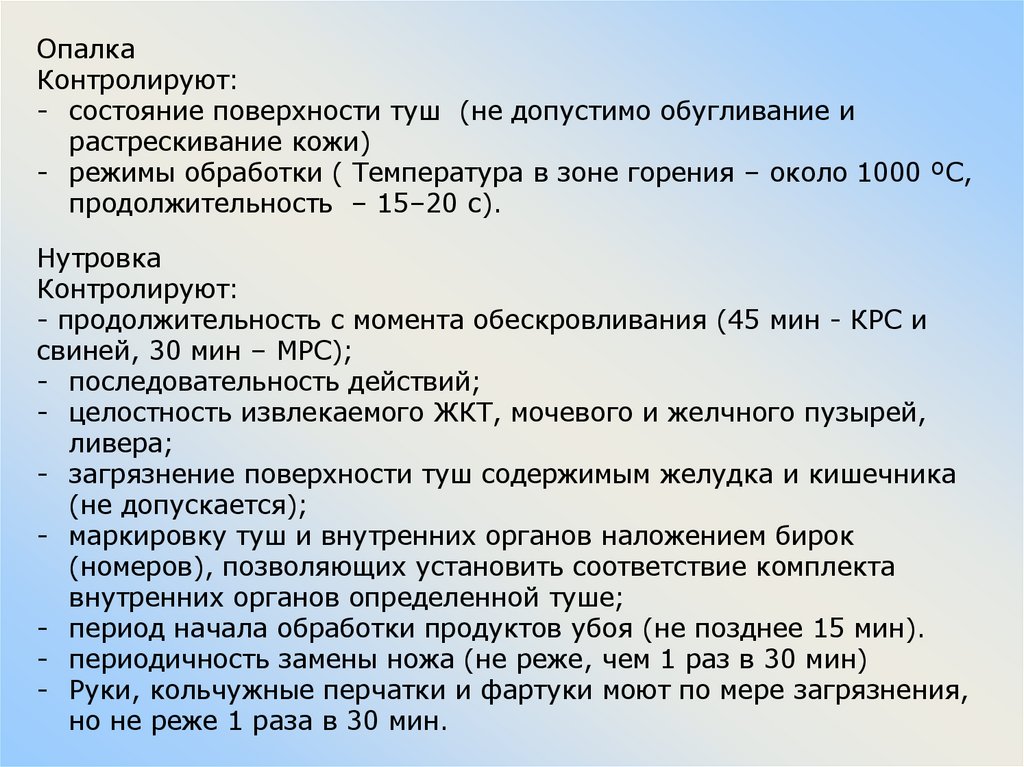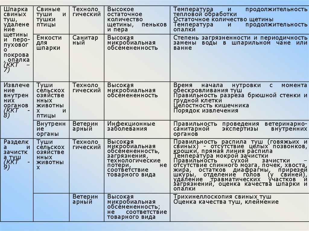 возможность загрязнения туш, полутуш и продуктов убоя.