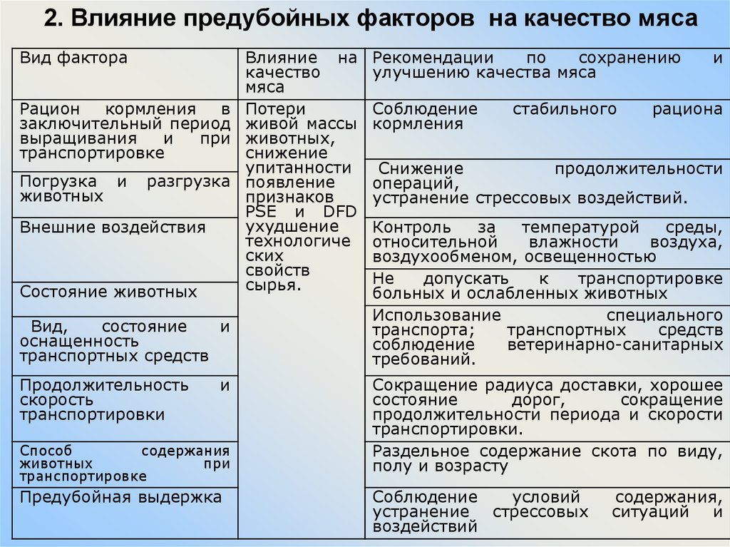 2. Влияние предубойных факторов на качество мясаВид фактора