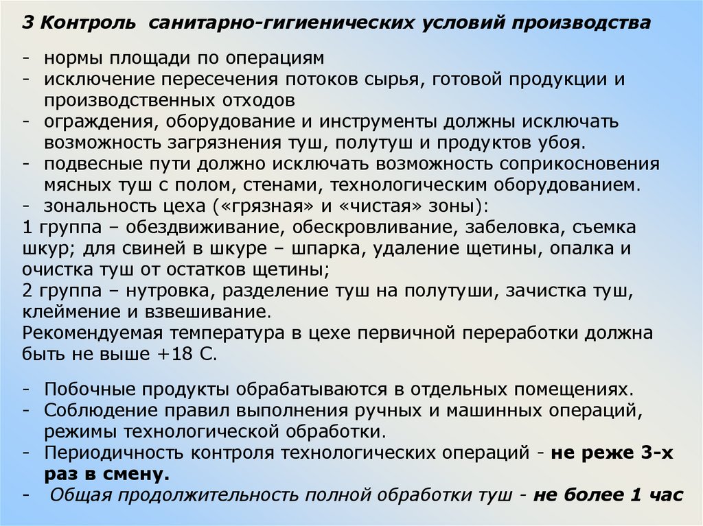 3 Контроль санитарно-гигиенических условий производства- нормы площади по операциям
