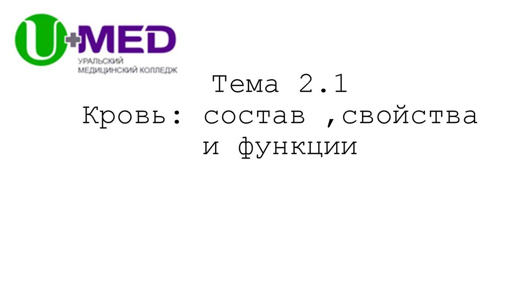 1. Тема 2.1 Кровь: состав ,свойства и функции