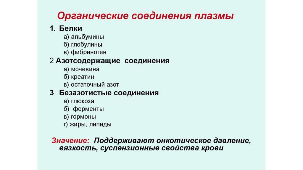 4. Органические и неорганические вещества плазмы,