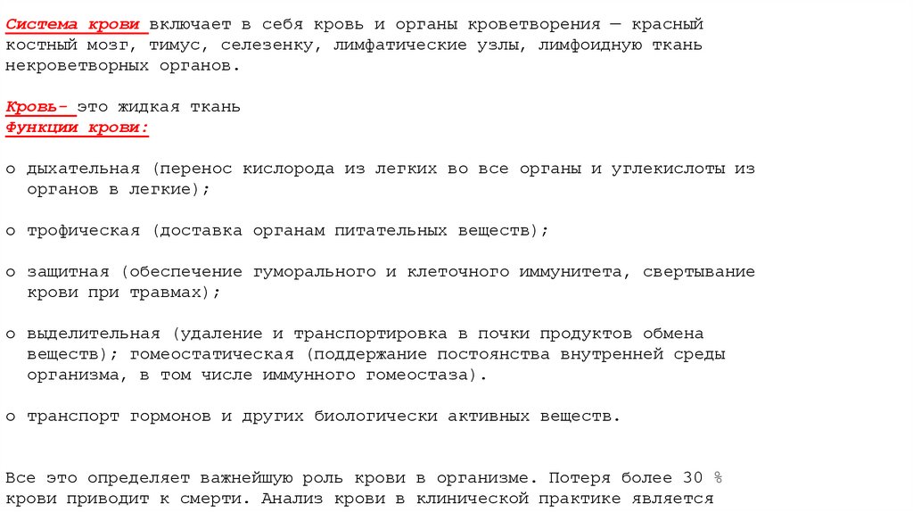 Все это определяет важнейшую роль крови в организме. Потеря более 30 %