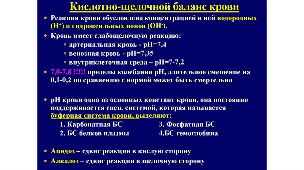 нарушений кислотно-основного состояния организма.