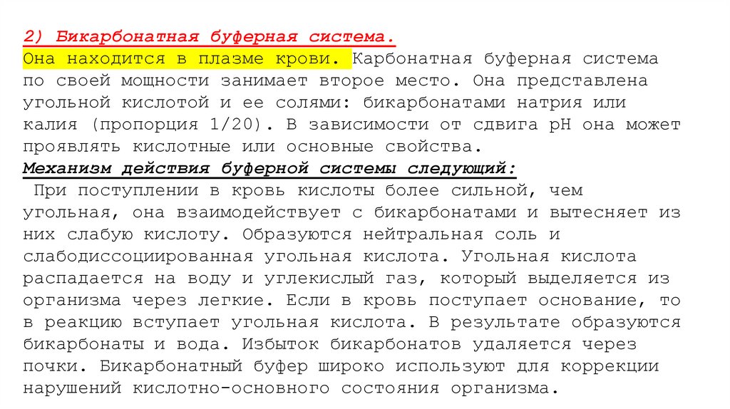 почки. Бикарбонатный буфер широко используют для коррекции