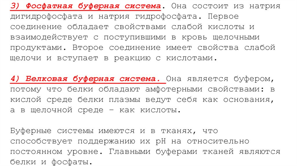Буферные системы имеются и в тканях, что