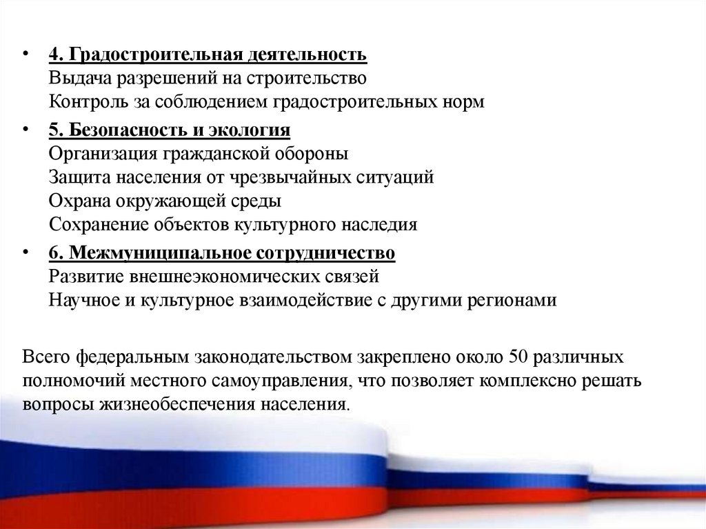 • Местное самоуправление осуществляется на всей территорииРФ в городских, сельских поселениях, муниципальных районах,