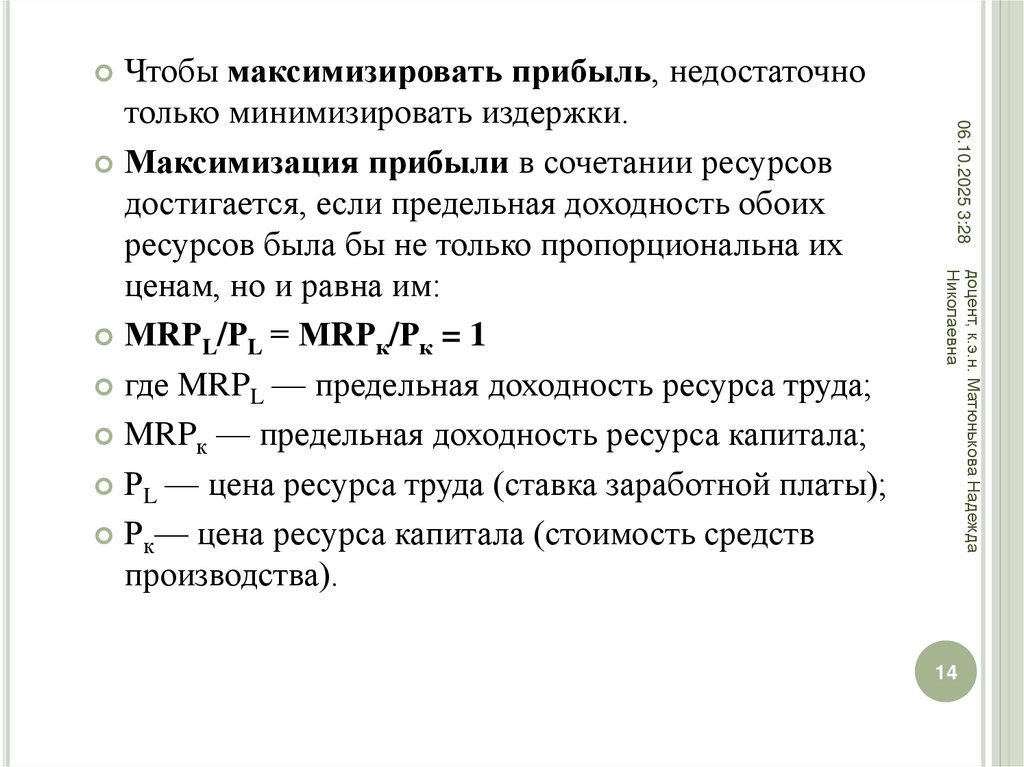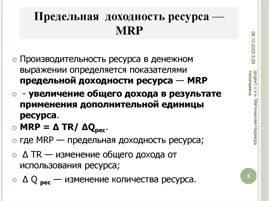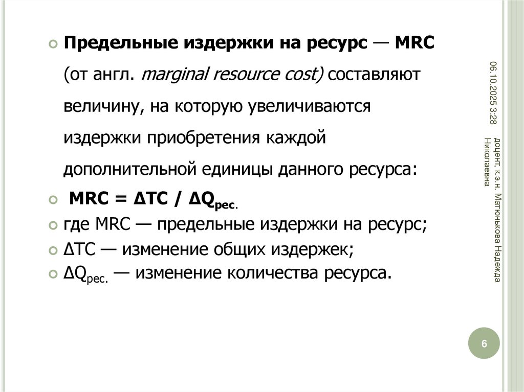 Предельные издержки на ресурс — MRC06.10.2025 3:28