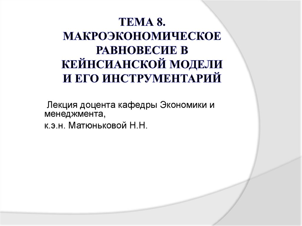 1. Тема 8. Макроэкономическое равновесие в кейнсианской модели и его инструментарий