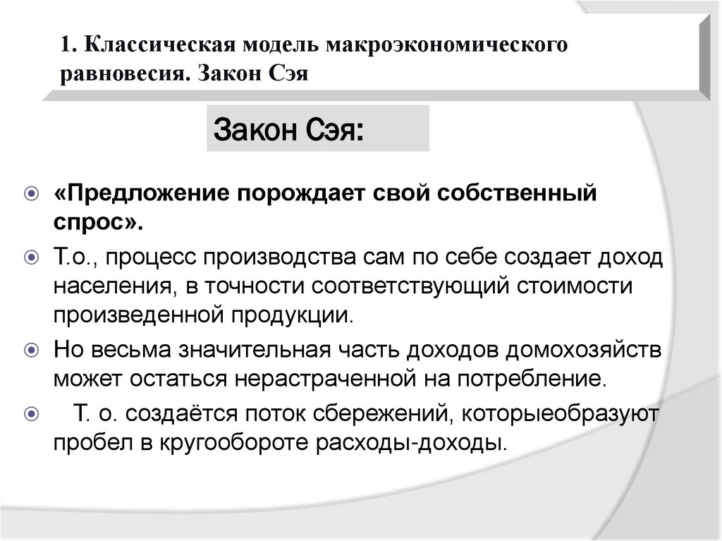 1. Классическая модель макроэкономическогоравновесия. Закон Сэя