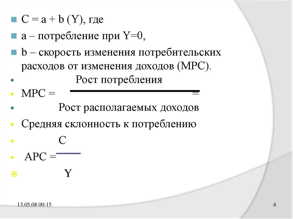 С = а + b (Y), гдеа – потребление при Y=0,