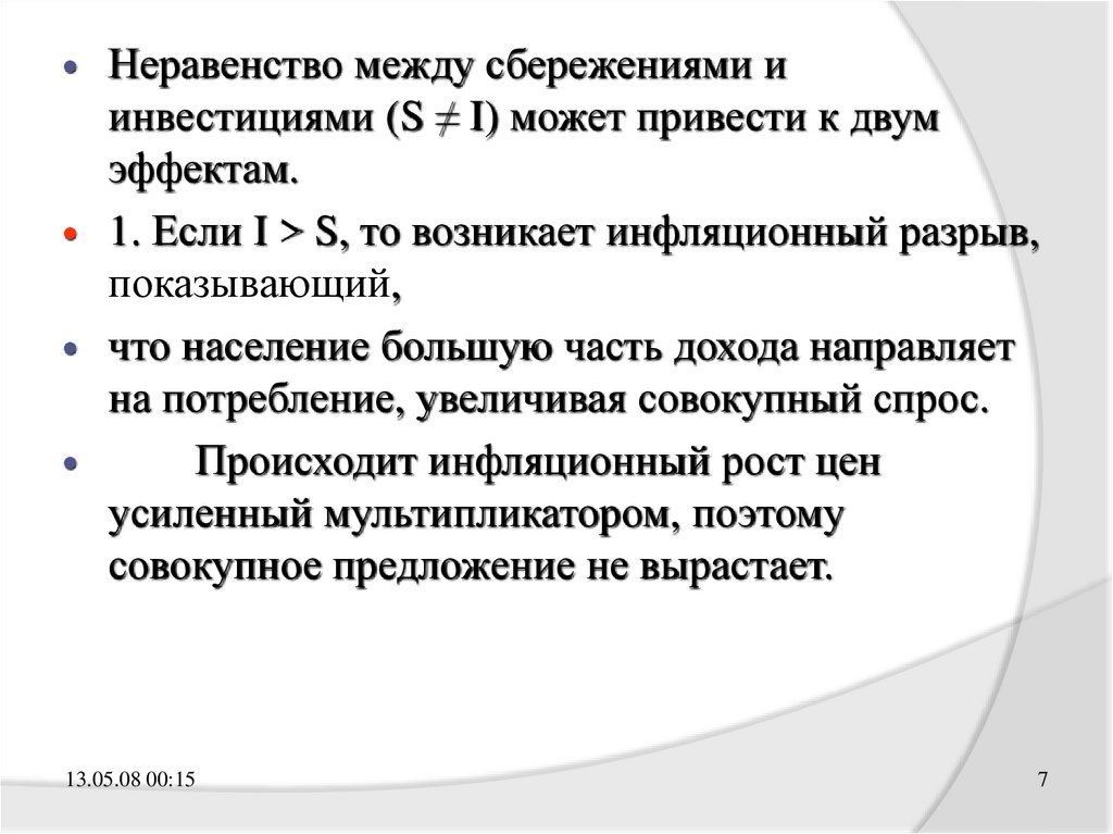 Неравенство между сбережениями иинвестициями (S ≠ I) может привести к двум