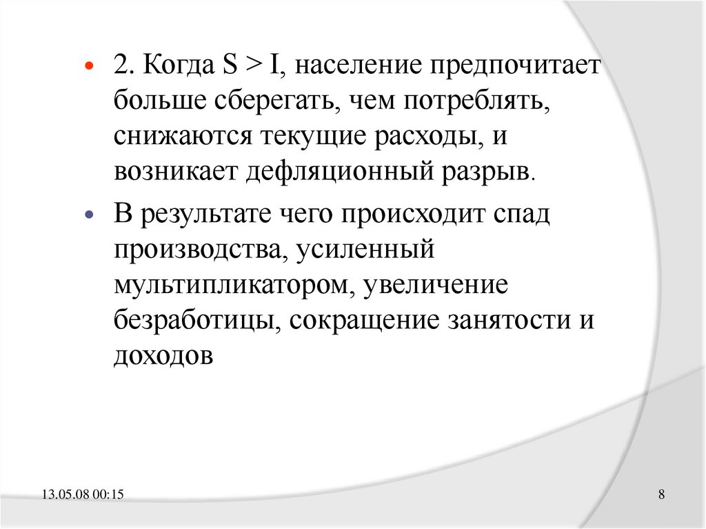 2. Когда S > I, население предпочитаетбольше сберегать, чем потреблять,