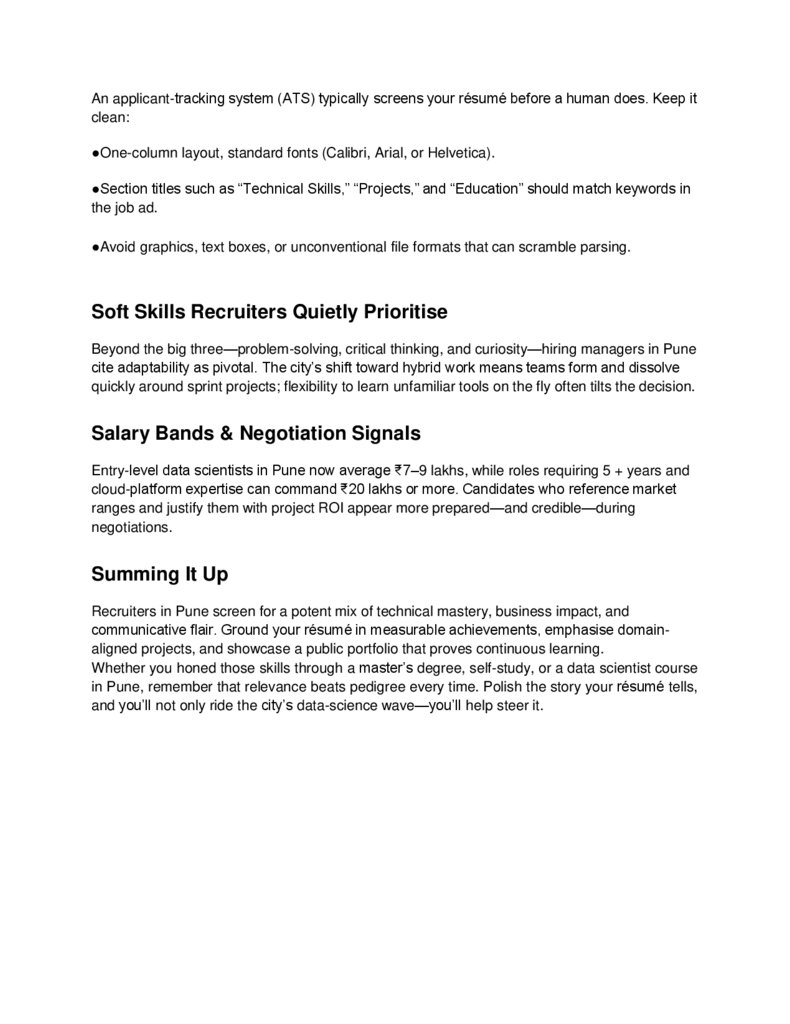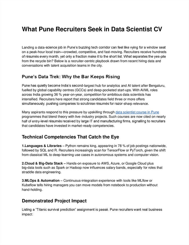 What Pune Recruiters Seek in Data Scientist CVLanding a data-science job in Pune’s buzzing tech corridor can feel like vying for a window seat