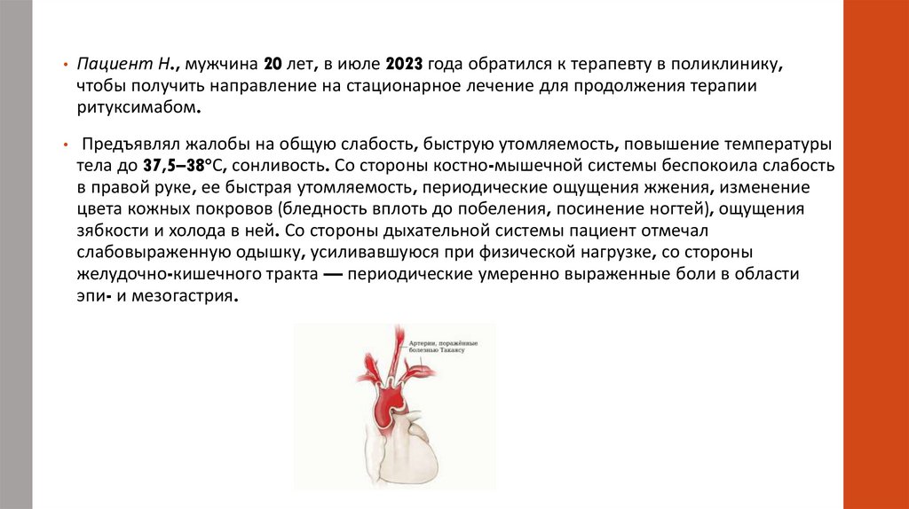 1. «Клинический случай артериита Такаясу у молодого пациента с множетсвенными клиничесикими проявлениями заболевания на ранней