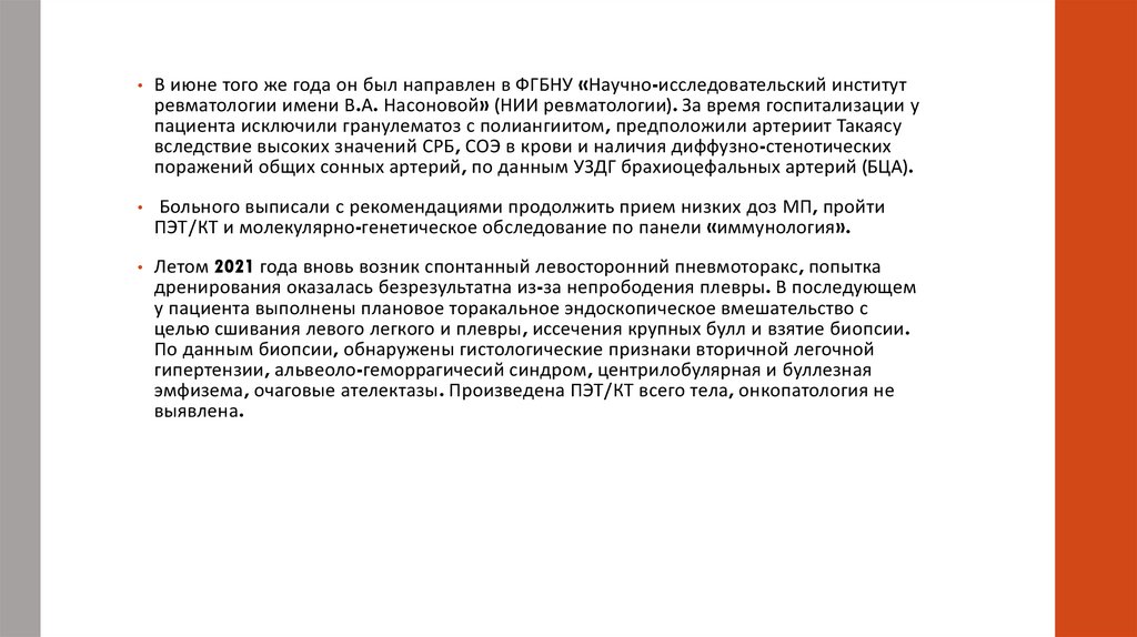 • Пациента госпитализировали в НИИ ревматологии, где поставлен диагноз