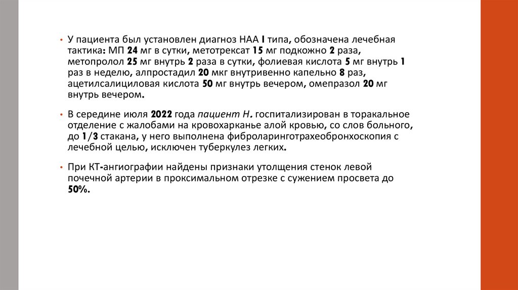 НАА V типа. К имеющейся терапии (МП по 16 мг в сутки, метотрексат 15 мг