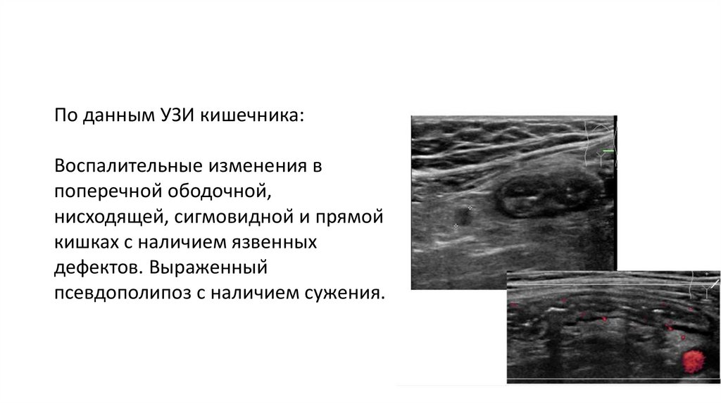 По данным колоноскопии:Эндоскопическая картина язвенного