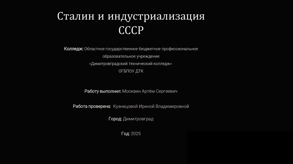 Цель: показать влияние Сталина на индустриализацию и развитие СССР как сверхдержавы