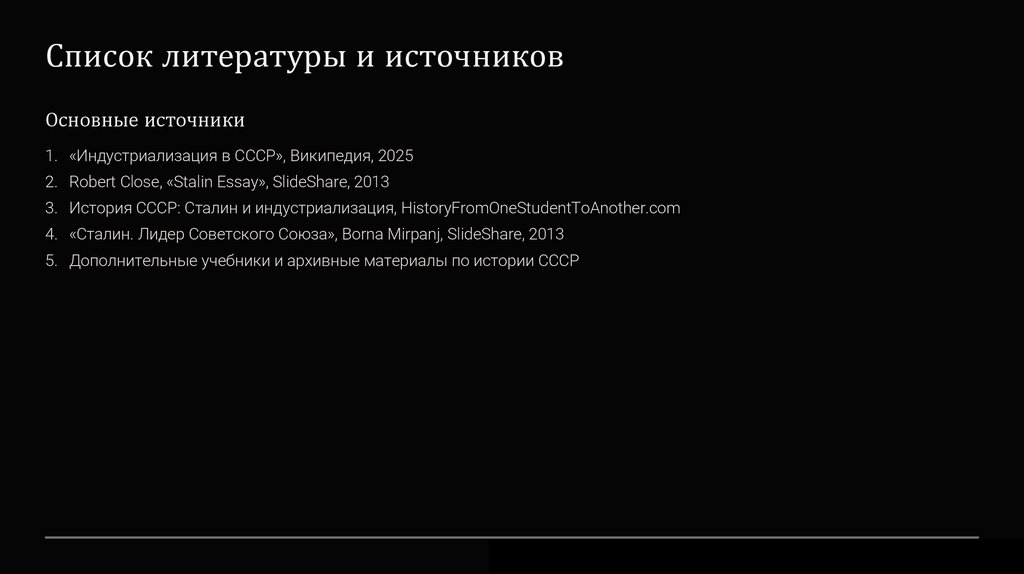 1. «Индустриализация в СССР», Википедия, 2025