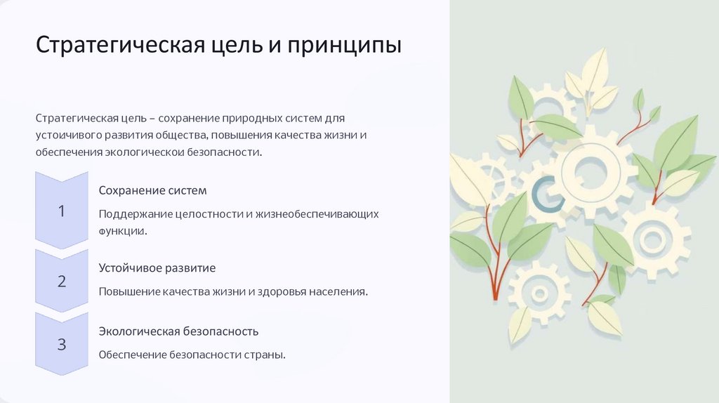 Стратегическая цель и принципыСтратегическая цель — сохранение природных систем для